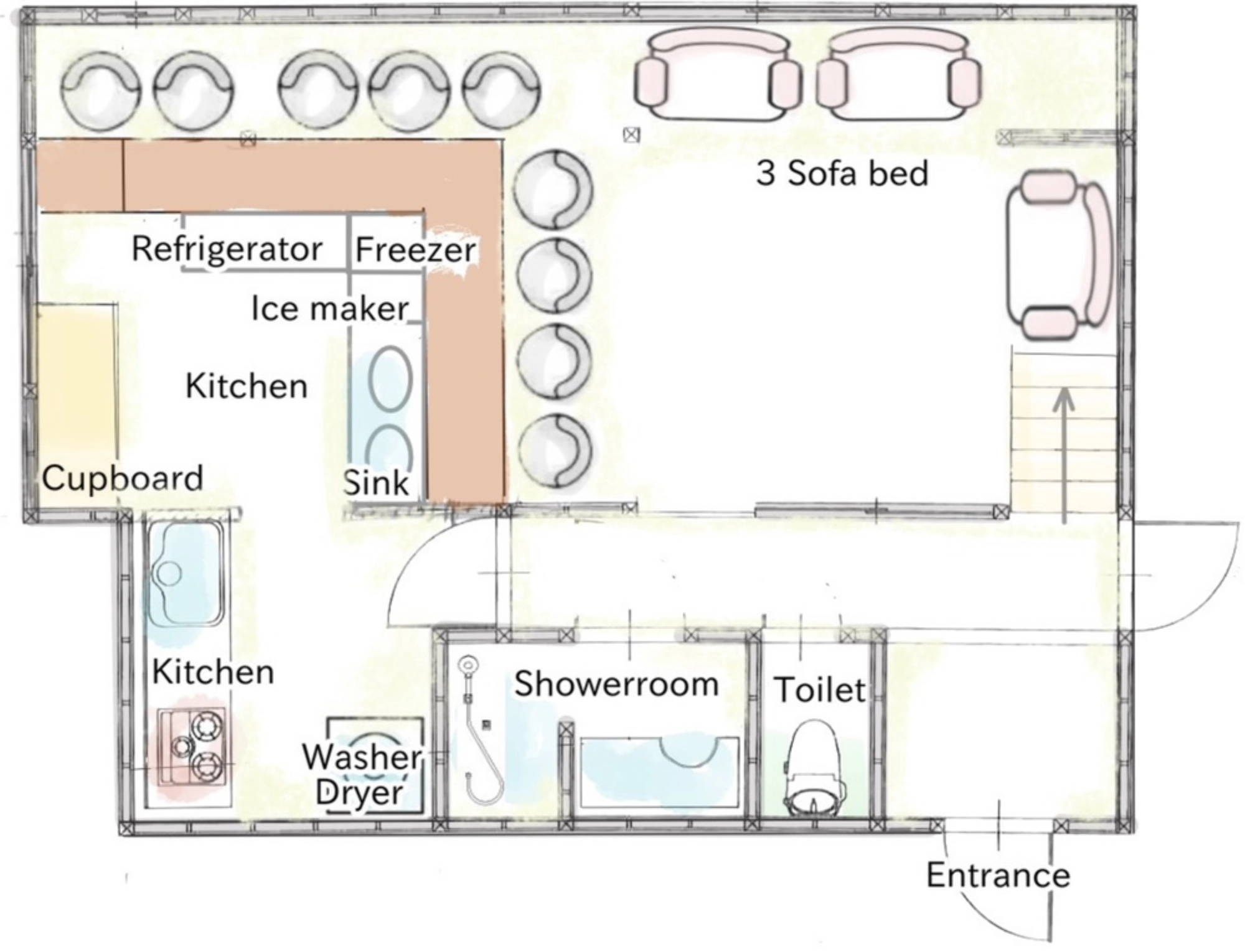 - お客様滞在中の清掃やゴミ回収は基本的にはありません。ゴミは室内のゴミ箱に捨ててください。簡易的な清掃用具がありますので汚れが気になる場合はご自身でお願いします。