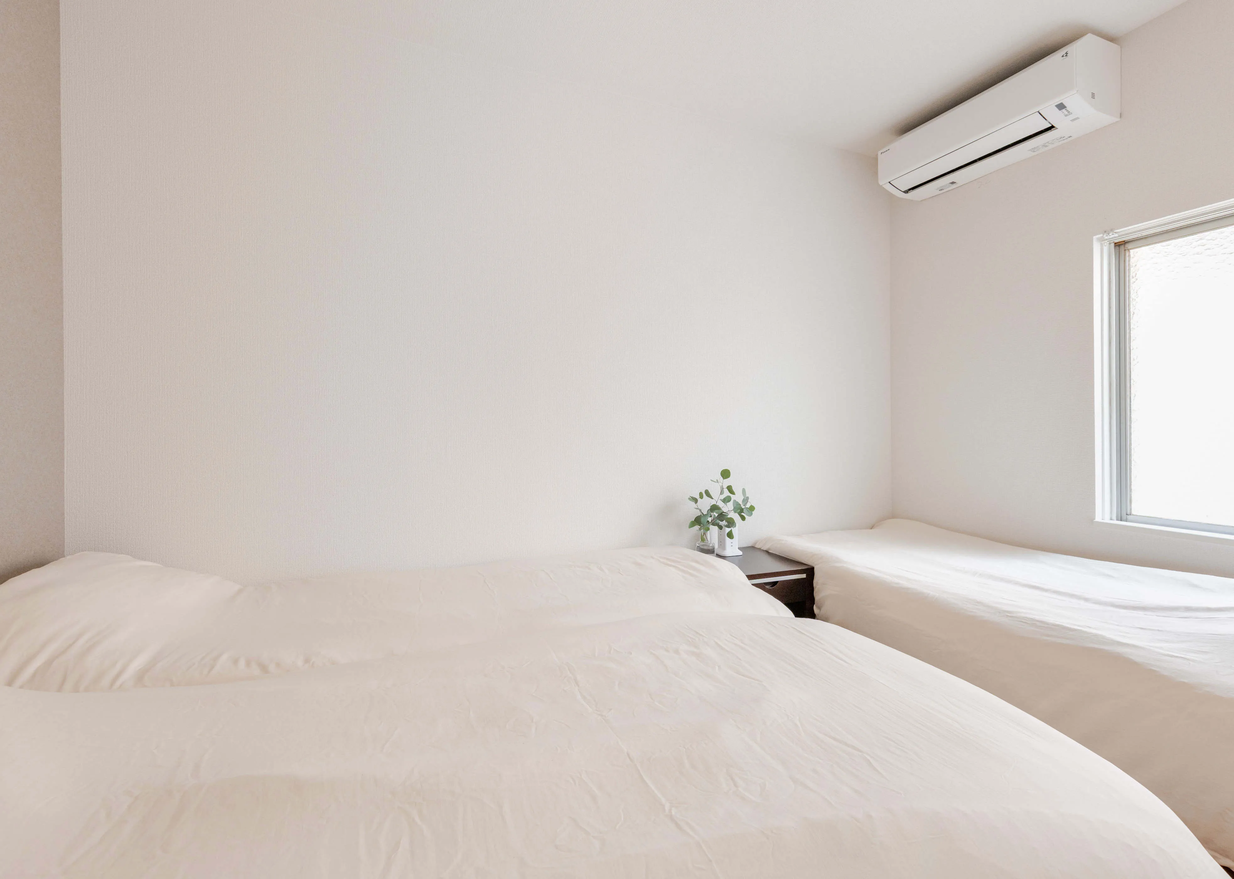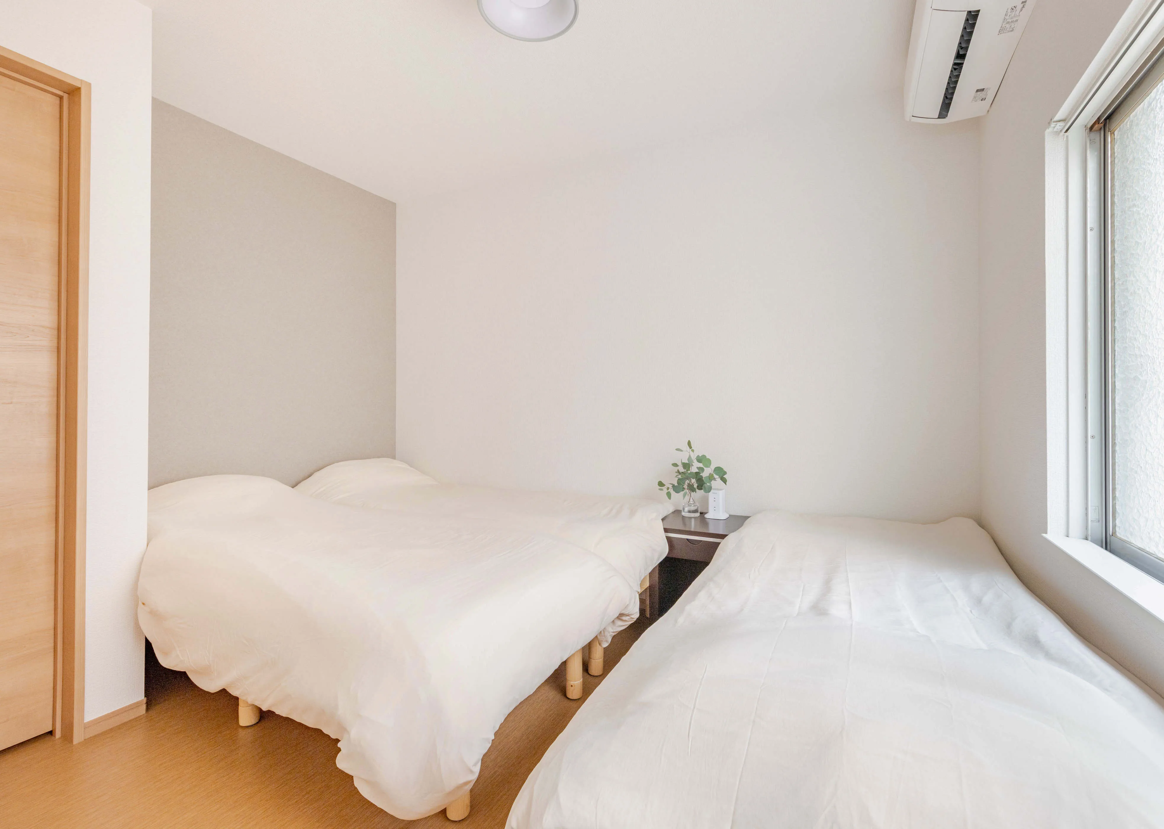75㎡の2LDK - 2階に2ベッドルーム。シングルベッドをそれぞれ3台。さらにリビングの3台のソファベッドを合わせ、最大9名まで快適に滞在できます。